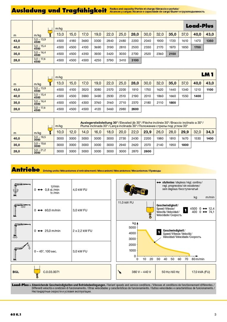 Краны серии 65 K.1 выполняют подъем всех грузов только в режиме 2-кратной запасовки — SPEED2LIFT. Отсутствие необходимости перепасовки канатов, никакой потери времени — все это помогает обеспечить максимальный объем перевалки грузов на стройплощадке.