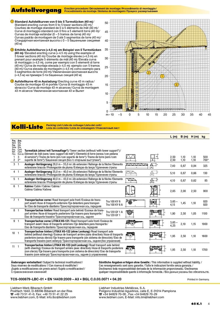 Грузовысотные характеристики башенного крана Liebherr 65 K.1
